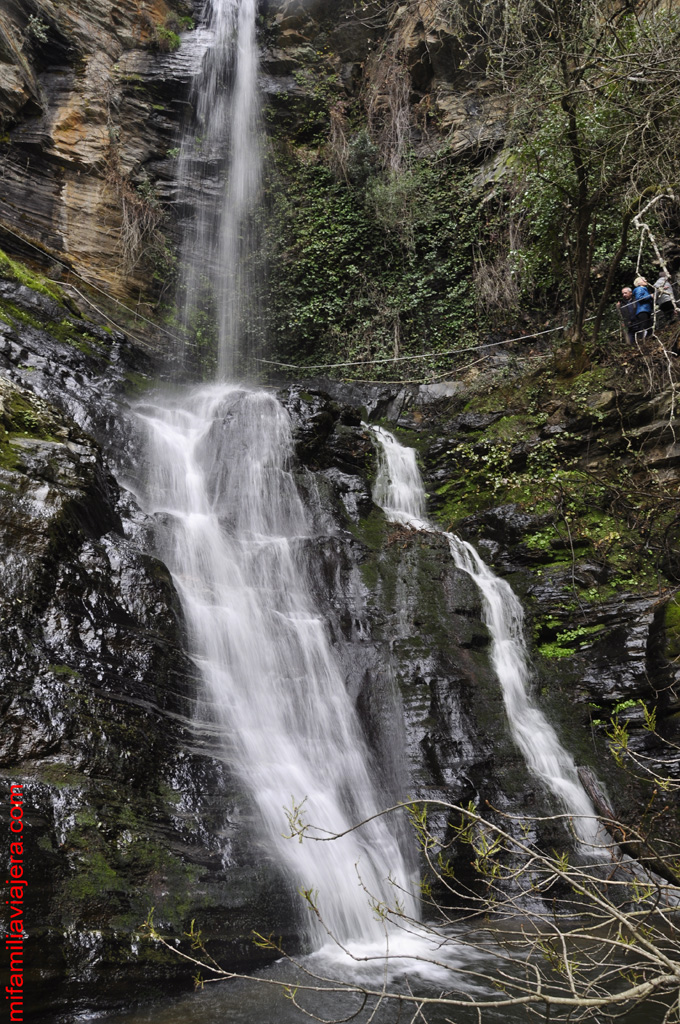 Bajamos un par de zigzag más y empezamos a acercarnos a la caída de agua. En las inmediaciones del salto hay cadenas y alguna cuerda para sujetarse por si el terreno está resbaladizo.