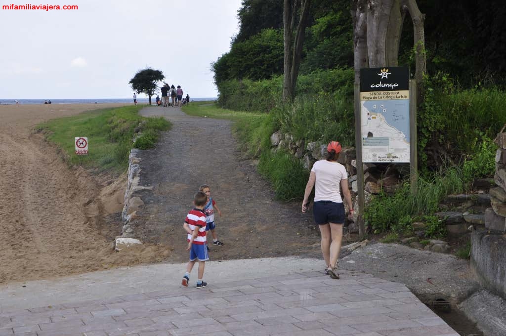 Pero además de ser una zona ideal para el baño, se la conoce por los yacimientos de icnitas que hay cerca de la playa. Para ver estos yacimientos, hay que seguir la senda que parte de un panel explicativo que hay nada más atravesar el río Libardón. Una pasarela de madera nos facilitará este cometido. Desde el pequeño puente se inicia la senda costera que va desde la playa de La Griega hasta la localidad de La Isla. Pero nosotros en esta ocasión sólo vamos a realizar el primer tramo. El que va desde la playa al yacimiento, y que son unos 580 m.