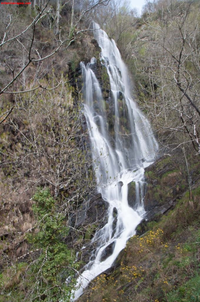 Nosotros vamos a continuar de momento de frente. El sendero se va estrechando y haciéndose más escarpado según nos vamos acercando a las inmediaciones de la cascada. En este tramo hay que ayudar a los más pequeños y tener cuidado con alguna caída accidental.