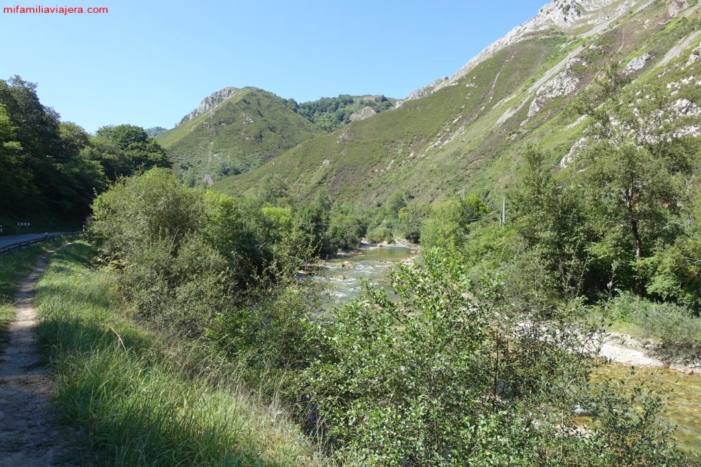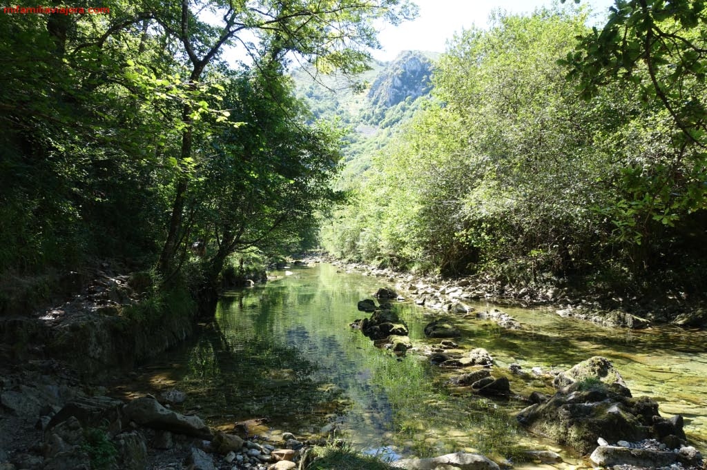 Cuando el camino vuelve a ensancharse, alcanzaremos una pradera. Detrás de unos frondosos árboles tendremos la recompensa del esfuerzo realizado. Una preciosa poza de aguas turquesas, rodeada de rocas y vegetación nos espera. Es una playa fluvial, así que, si os atrevéis con las frías aguas de Picos de Europa, no olvidéis el bañador y chanclas porque hay mucha piedra.