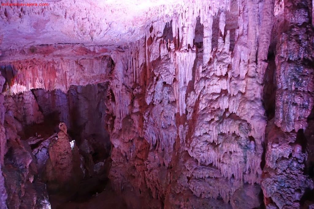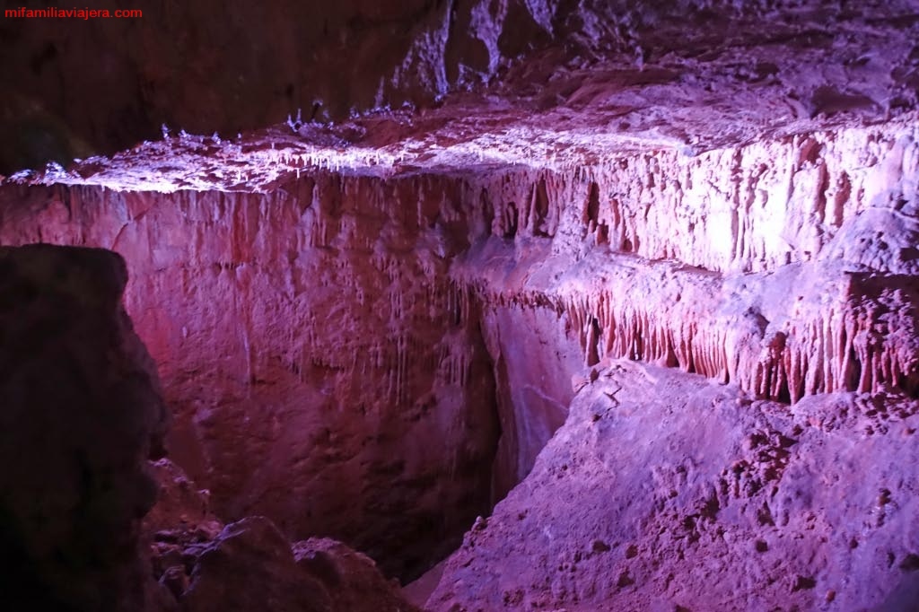 Durante casi un kilómetro recorrimos galerías y salas repletas de estalactitas, estalagmitas, coladas, mantos, cortinas, macarrones y columnas. Los niños estaban encantados, la guía ofrece una explicación clara y concisa de todos los detalles de interés y, además, adapta la explicación a los más pequeños. Todos lo que tenemos niños, hemos echado en falta en alguna ocasión la empatía con los más pequeños. Esto aquí, no ocurre.