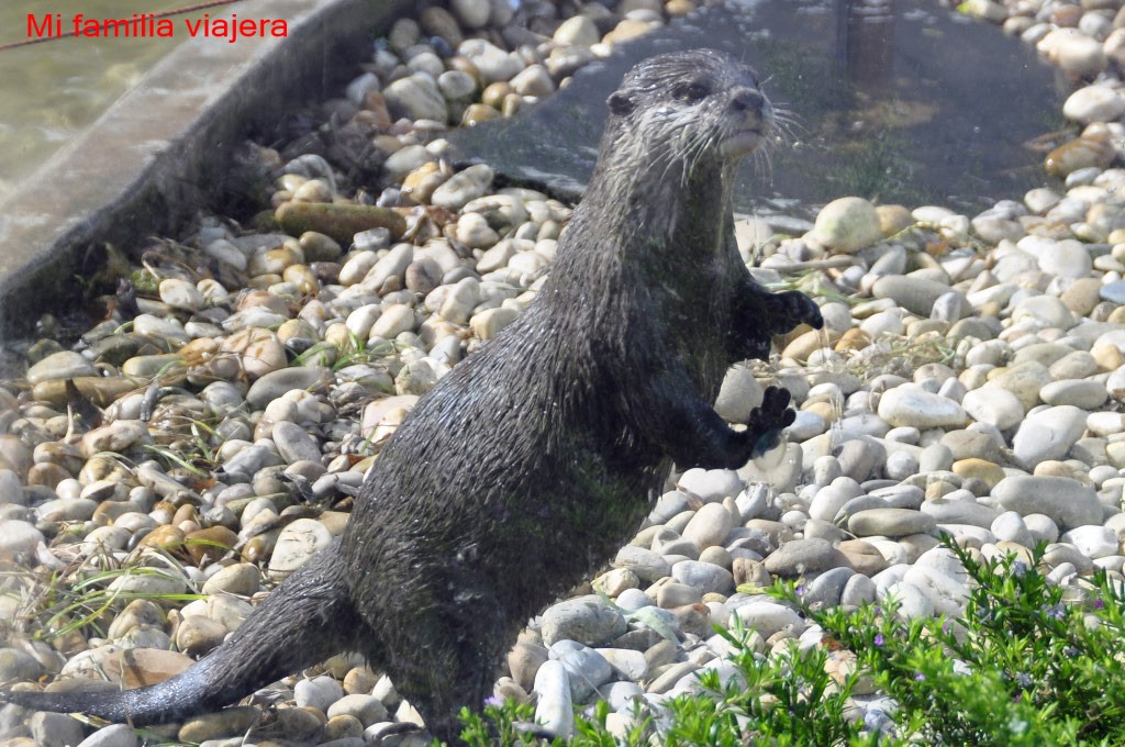 Una vez repuesto fuerzas, nos acercamos a ver la demostración de alimentación de las nutrias. Estos pequeños animalitos se muevan más que nuestros hijos (y mira que es difícil). Tienen una enorme facilidad para nadar e inmediatamente después, salir a tierra firme para jugar entre los troncos y las rocas. Son muy activas, sobre todo si hay moluscos o crustáceos, incluidos en el menú del día.